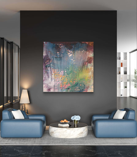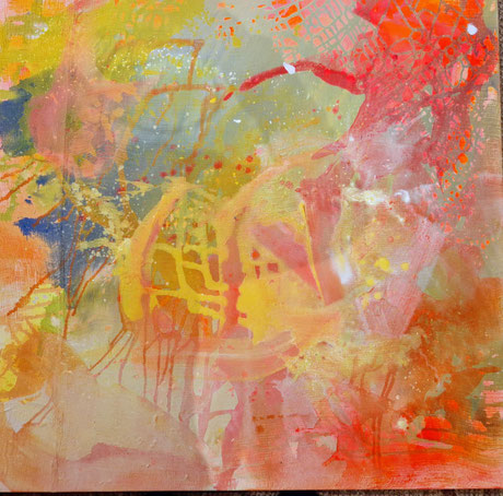 Ein "Gute-Laune-Bild" in fröhlichen, aber nicht aufdringlichen Farben, alles darf sein - nichts muss. Ich habe mich vollends auf das Fließen der Farben eingelassen .... und liebe das Ergebnis!